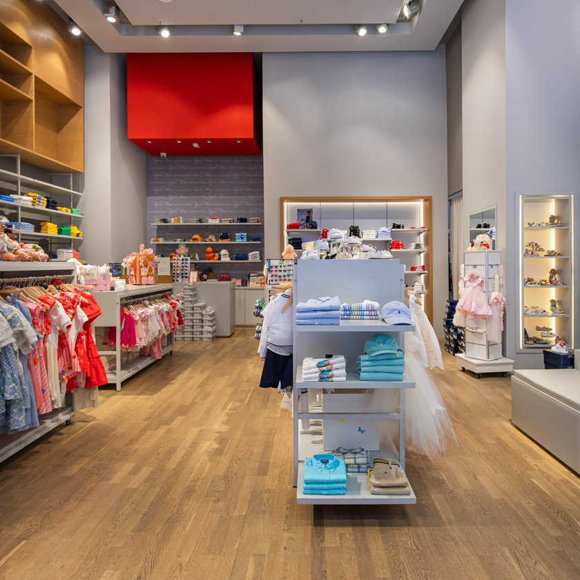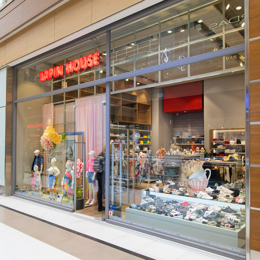 Lapin House store, offers the consumer a wide variety of well-known international brand names such as Burberry, Ralph Lauren, Timberland, DKNY, in footwear such as Prada, Tod's, Hogan and items for baby growth and baby furniture such as Mamas & Papas, Bebe Comfort, Babideal, Maxi-Cosi .