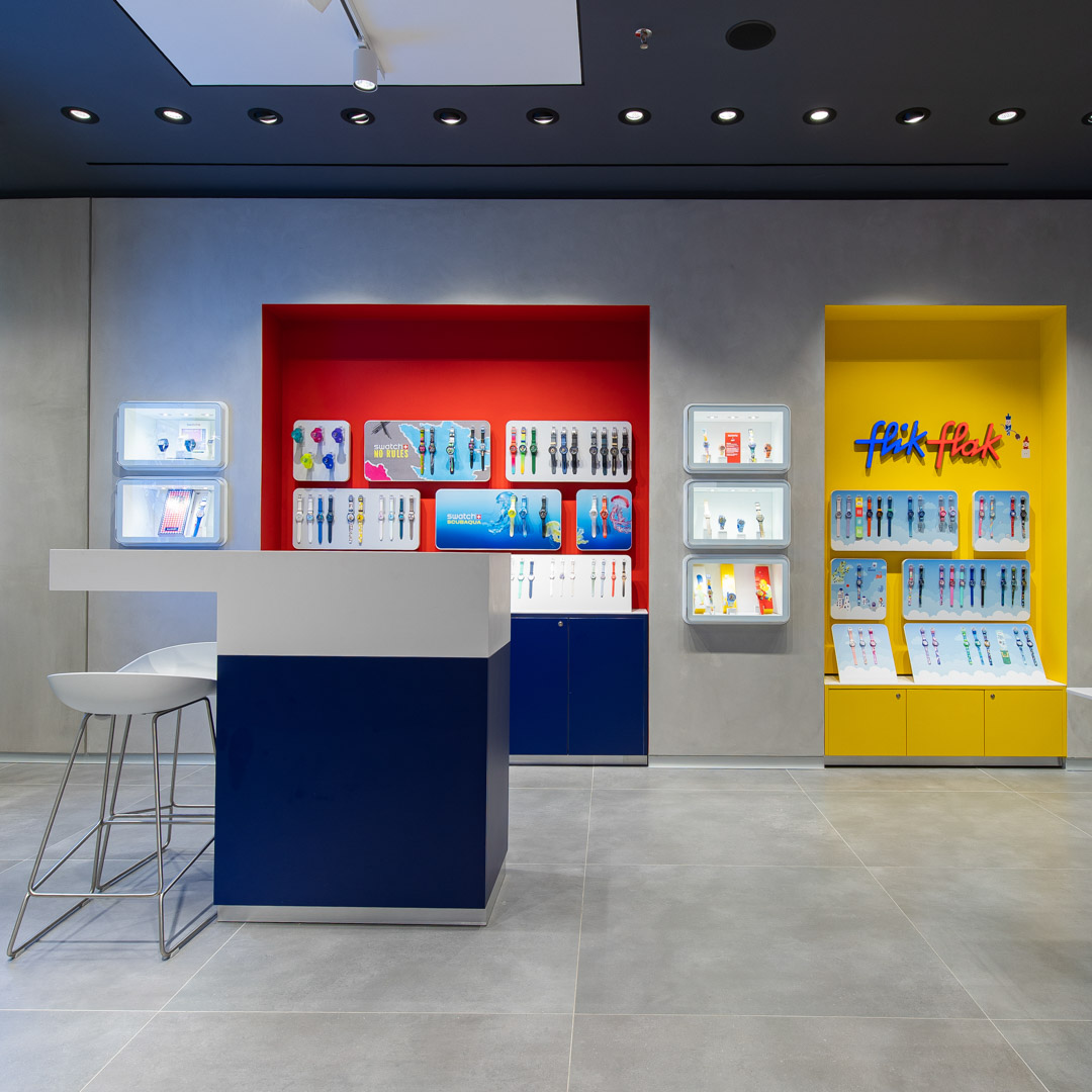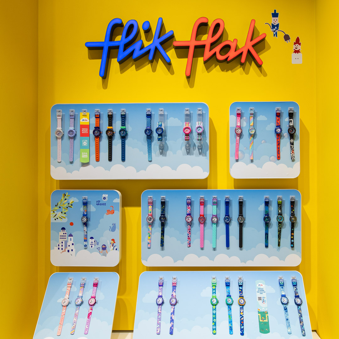 The fresh and playful store of the favorite Swiss watches "Swatch” is here! In Swatch store you will find all new seasonal collections, special items by Swatch partnerships with athletes or artists, the mechanical watches Swatch SISTEM51 with the unique innovative automatic movement and Swatch Touch Zero, the brand’s most up-to-date microelectronic technology product. Flik Flak, the favourite Swiss watches brand for children up to 12 years, holds a special place in the store with incredible watches for our small friends! Lift up your spirit with the unique Swatch style!